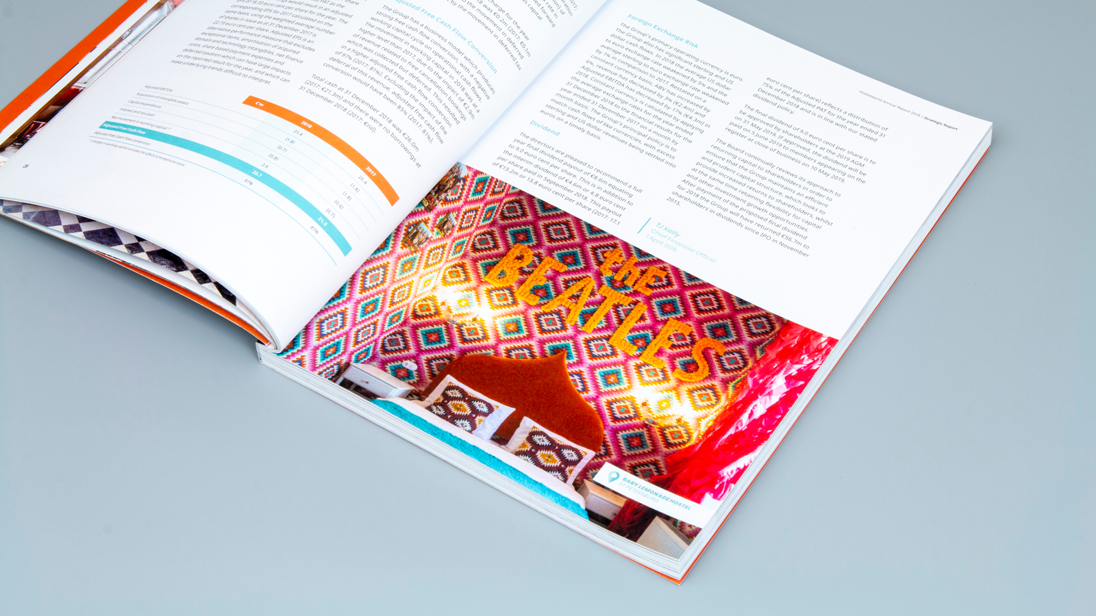 In 2019 Hostelworld celebrated their 20th anniversary. One thing that was done to mark this occasion was to design the most celebratory annual report the company has done to date. The contents of the publication showed how the company has grown and adapted over the years which influenced the design and especially the cover.